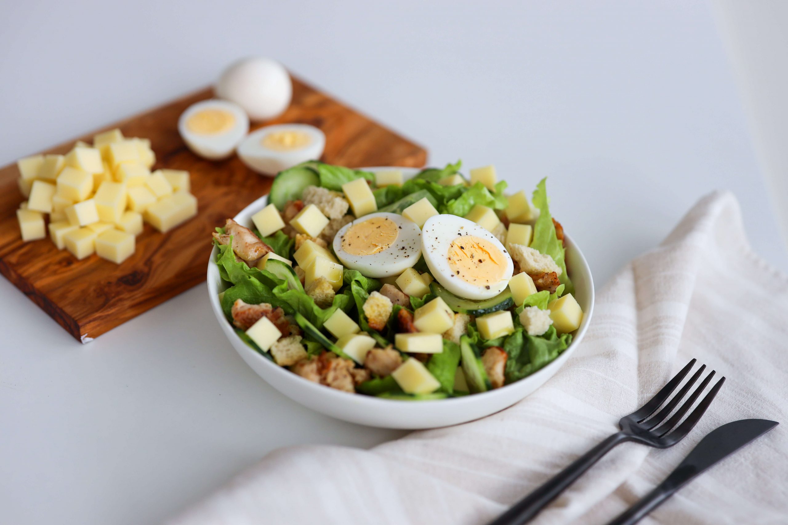 saláta, uborka, mozzarella, tojás, kruton, grillezett csirkemellKosárba teszem 3890 Ft -